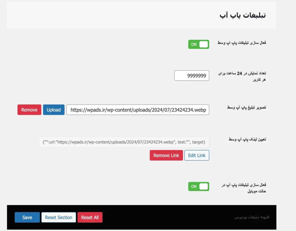 با استفاده از این پلاگین می توانید در گوشه های چپ و راست و وسط (پاپ آپ) تبلیغات نمایش دهید